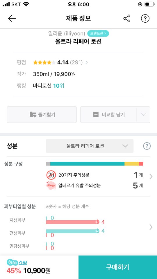 화장품 살 때는 꼭 '화해' 어플에서 검색해보고 사거든요. 저는 '스테아릭애씨드'라는 성분이 특히 안맞고 그 밖에도 피이지 성분이 들거나 알레르기 유발 성분이 3개 이상 들면 웬만하면 사지 않아요. 얼굴이 간질간질해지더라구요.